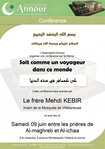 L’association Annour organise une conférence sur le thème: Soit comme un voyageur dans ce monde