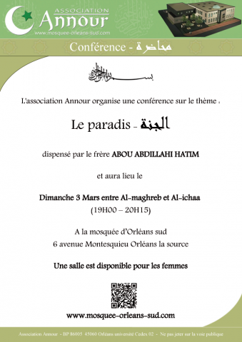 L'association Annour organise une conférence sur le thème : Le paradis - الجنة