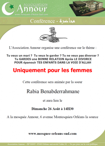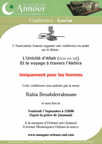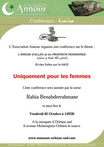 Et aura lieu le Vendredi 05 Octobre à 14H30 à la mosquée d’Orléans sud 6 avenue Montesquieu Orléans la source.