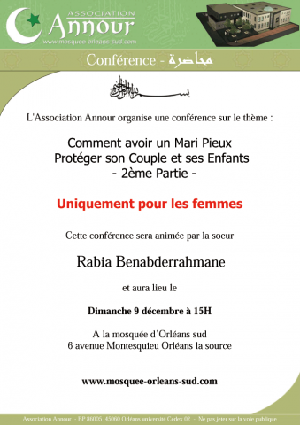 Cette conférence sera animée par la sœur Rabia Benabderrahmane.